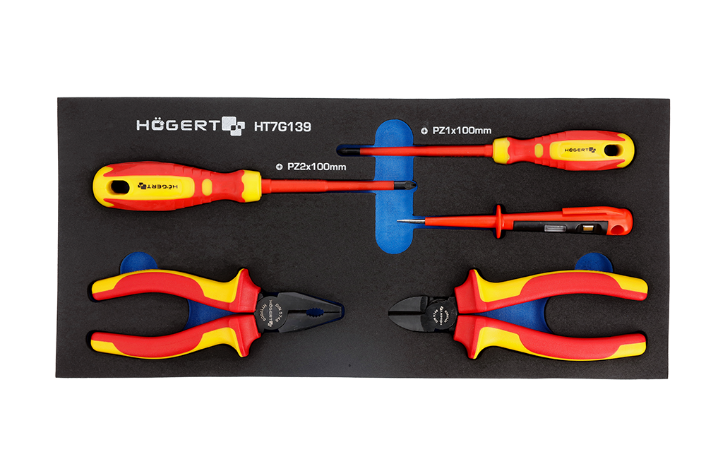 Набор диэлектрических отверток и клещей 1000V, индикатор напряжения, ложемент EVA 5шт., HT7G139