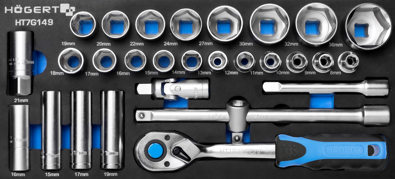Набор инструментов с трещоткой 1/2", 27 шт., ложемент EVA HT7G149