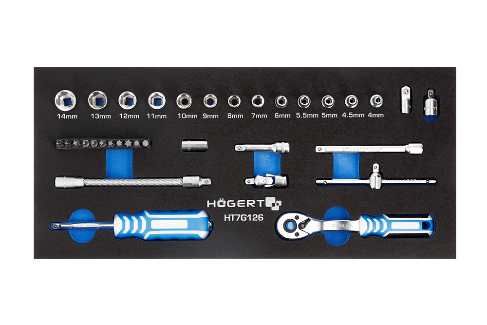 Набор инструментов с трещоткой 1/4", 34 шт., ложемент EVA HT7G126