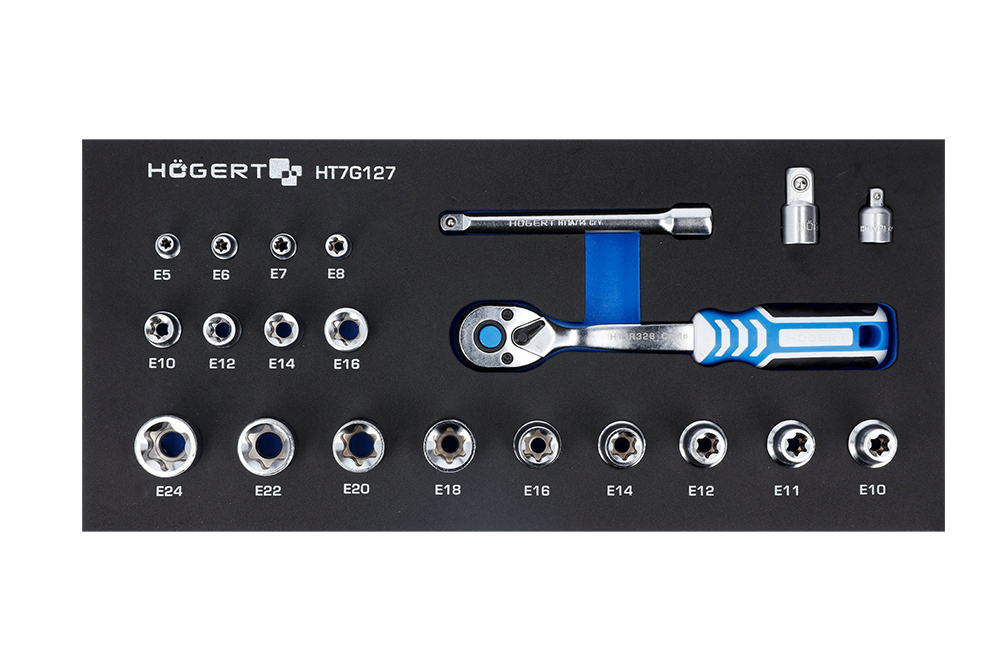 Набор инструментов с трещоткой 3/8", 22 шт., ложемент EVA HT7G127