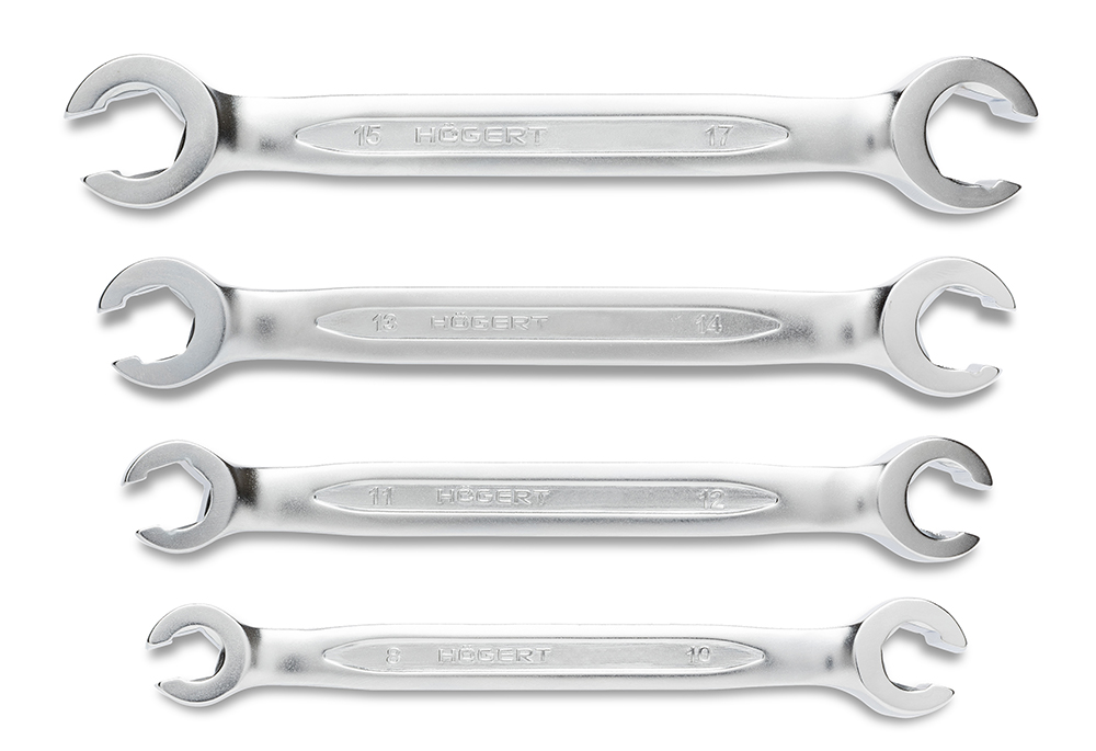 Набор двусторонних открытых накидных ключей. Ключи предназначены для отвинчивания тормозных, топливных и гидравлических шлангов.
